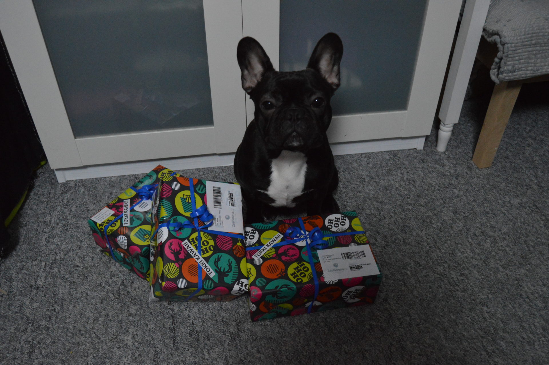 After half an hour she screamed DONEEE so loudly that I jerked awake. She made so much hype about the presents that I had to go and see how do they look. I must admit they look pretty good, but the packages we made for our winners in our candle-charity-contest were way more better looking. And the content was for sure better than those random scraps she wrapped. Well, just see for yourself.