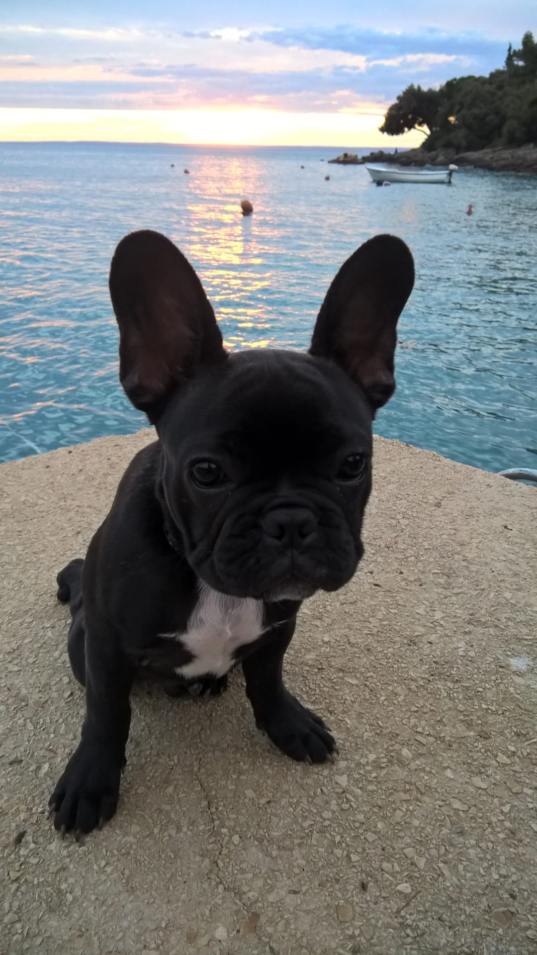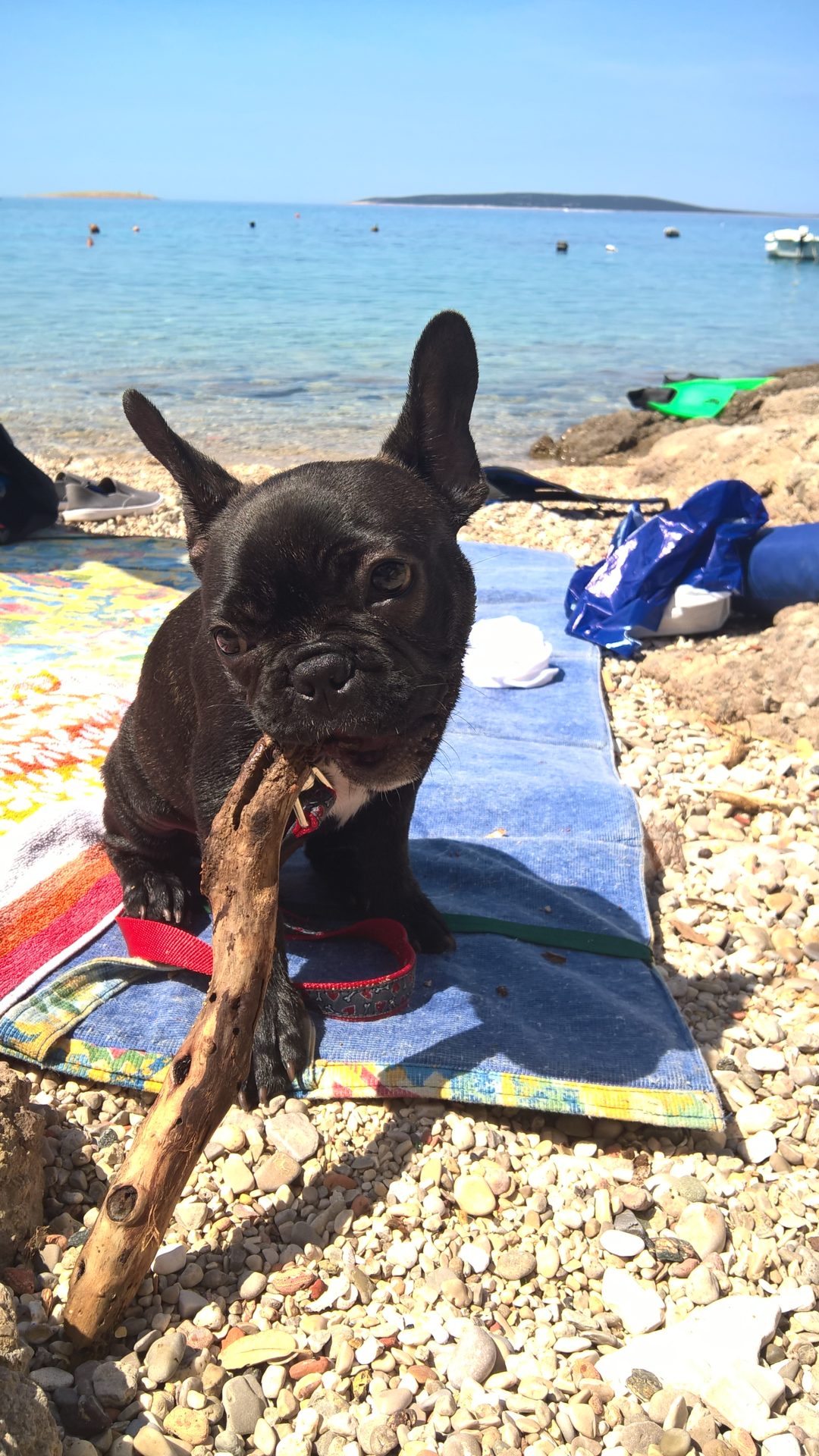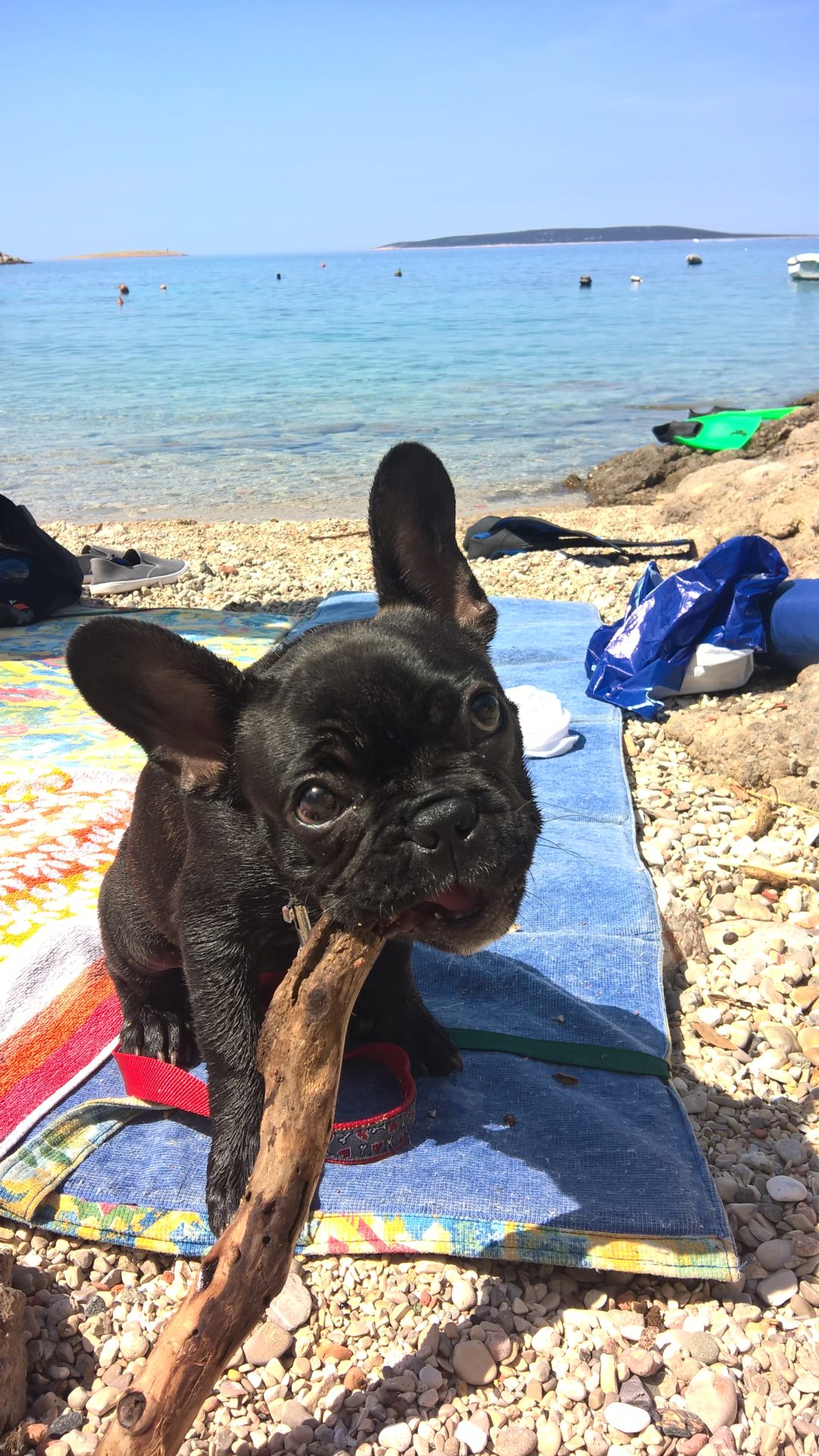 I ran into it, wetting my paws and when I was at it, I drank some of the water like I do at home. Treachery! The water was disgusting, even worse than at home when the soap is in it. I ran back and sat on the rocks with offended expression. Both masters started making fun of me. I bet she knew it, such hydra, didn’t tell me anything. But I went in again and this time I found a huge stick, which I dragged outside. I’m sending you one salty lick.