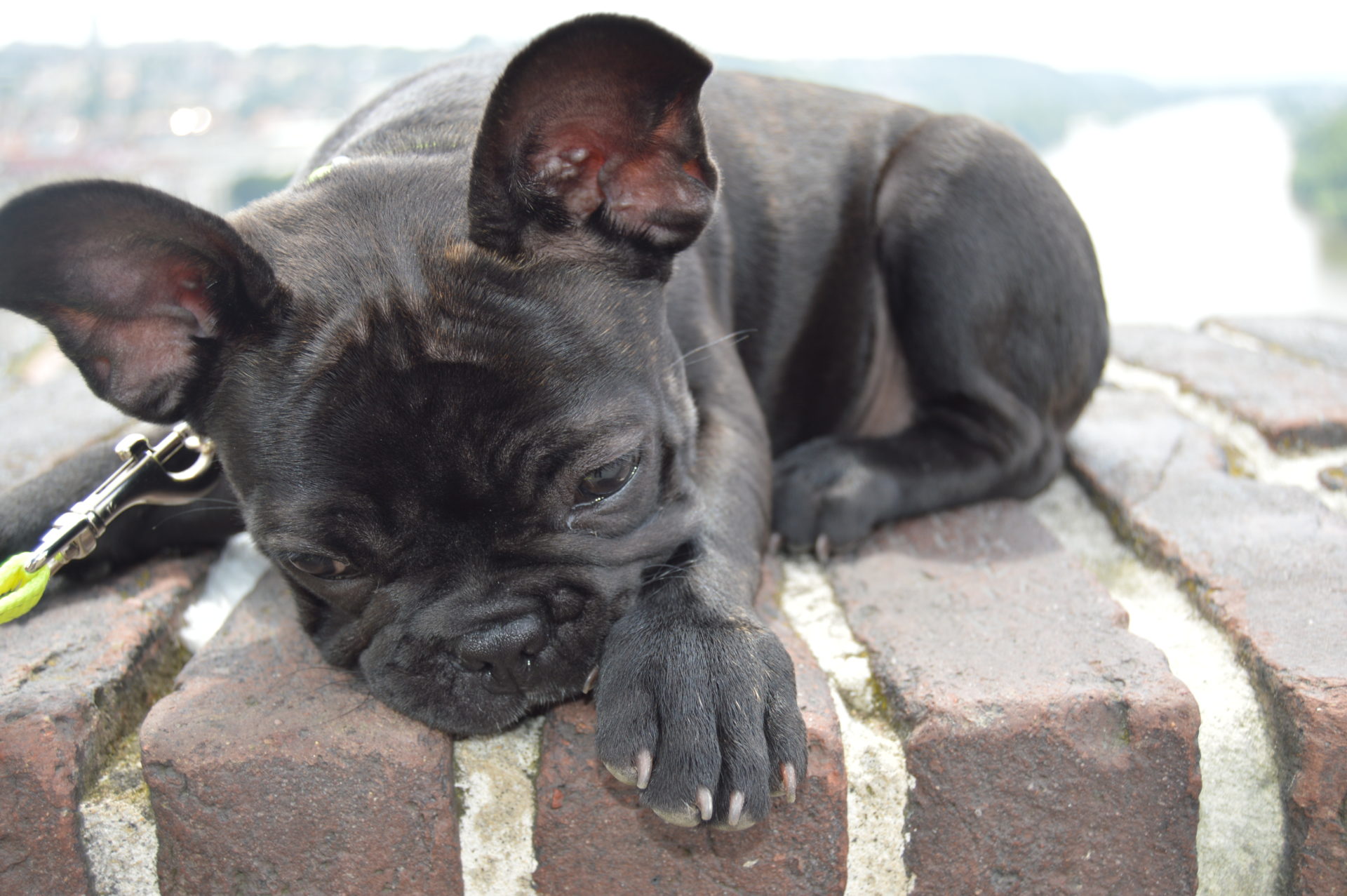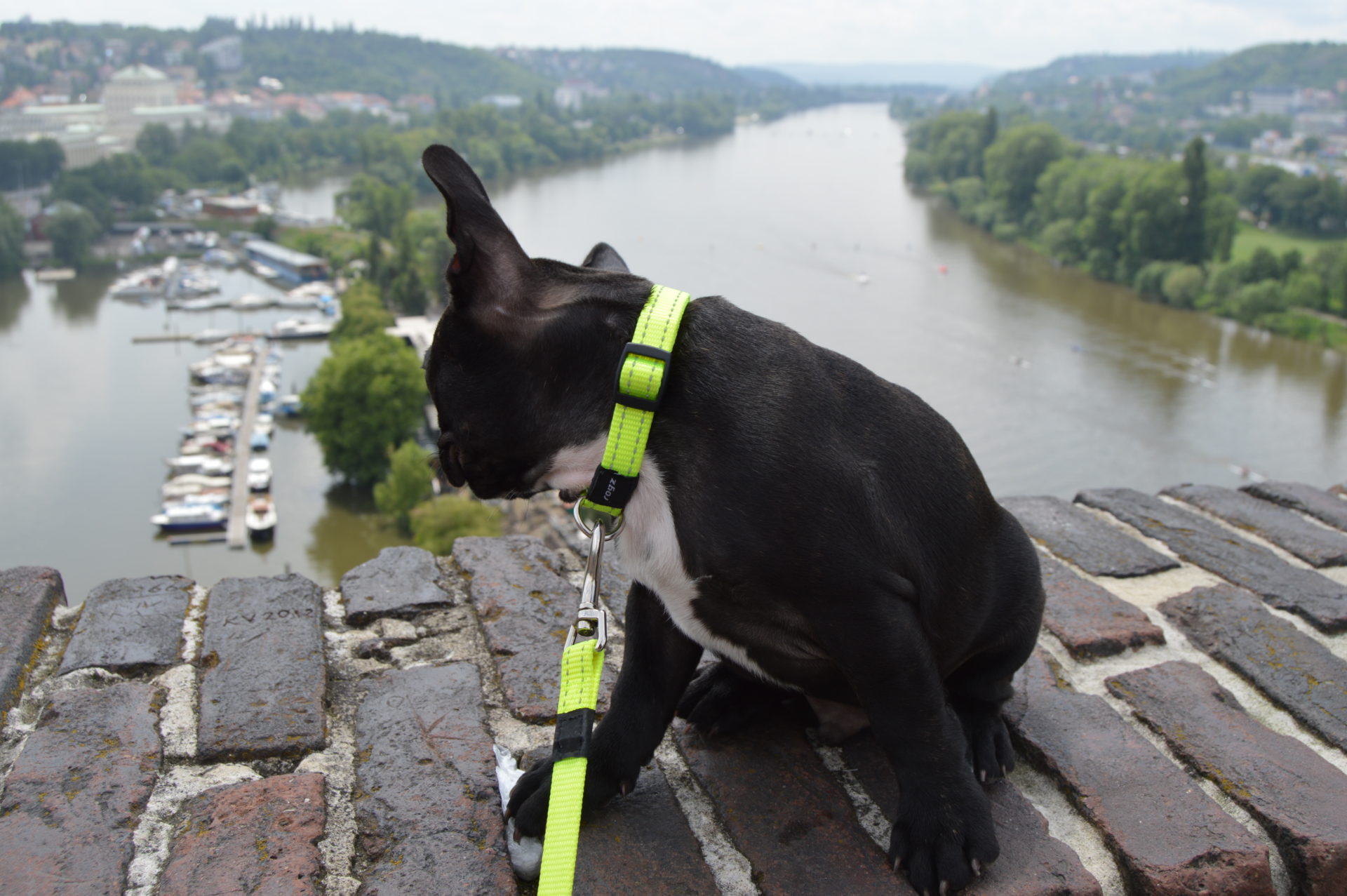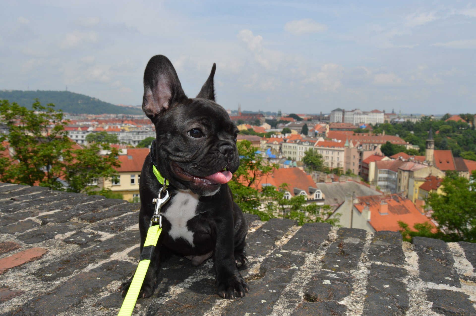 Today is SaTURDay and I left small turd in the master’s hall. I do remember not to eat any shoes (only the master’s slippers, those are free to annihilate) so out of boredom I decided to entertain myself and take my masters for a hike to the Vyšehrad castle. And I’ll tell you the horse was crazy… it was frightfully high. Thank the mighty Paw I have my life-line and I could just focus on sticking my tongue at passers-by. I would run to some of them for pleasant belly rub, but my master wouldn’t let me… shouting “TOKKI DON’T” and “TOKKI LEAVE IT” so I just let it slide.  It is better to be on good terms with them, else they take out small piece of dried flesh and push it inside my mouth-yummmmy. But sometimes I deliberately slow down and let them to persuade me to mmmmove. Now I just have to improve the slowing down because sometimes I take it too far and my master will stop persuading me. If that happens the life-line snaps and drags me like I’m some donkey. It is so embarasing, I’m sure you can understand. Like this… in public… and I don’t get the meal candy.
