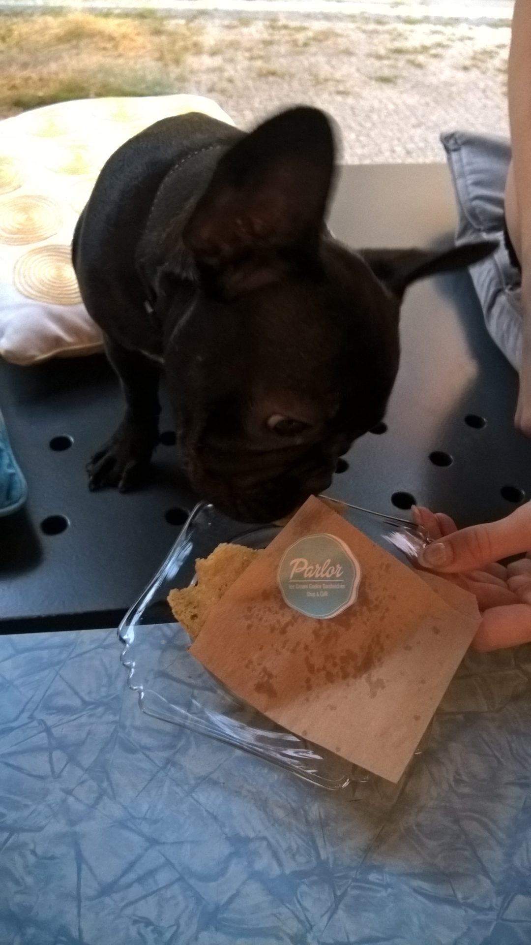 Ice cream, that’s what I like, but I found out (even my two underlings didn’t know) that in Prague we have something as awesome as Ice cream in a biscuit! Do you understand? Ice cream AND biscuit, together. I have to taste such delicious combo. So we went for a walk to Karlín with obvious goal: Parlor – Ice Cream Cookie Sandwiches. My masters were worried they won’t let us (read: me) in but I didn’t understand why wouldn’t they. I can go anywhere I want because I’m cute.